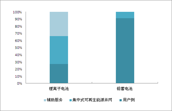 从中国市场来看,2017年新增投运的电化学储能项目中,锂离子电池和铅蓄电池基本平分中国市场份额,且锂离子电池所占比重略高。从各类技术的应用分布上看,新增投运的锂离子电池在集中式可再生能源并网领域中所占比重最大,接近40%;铅蓄电池主要分布在用户侧领域,所占比重超过90%。