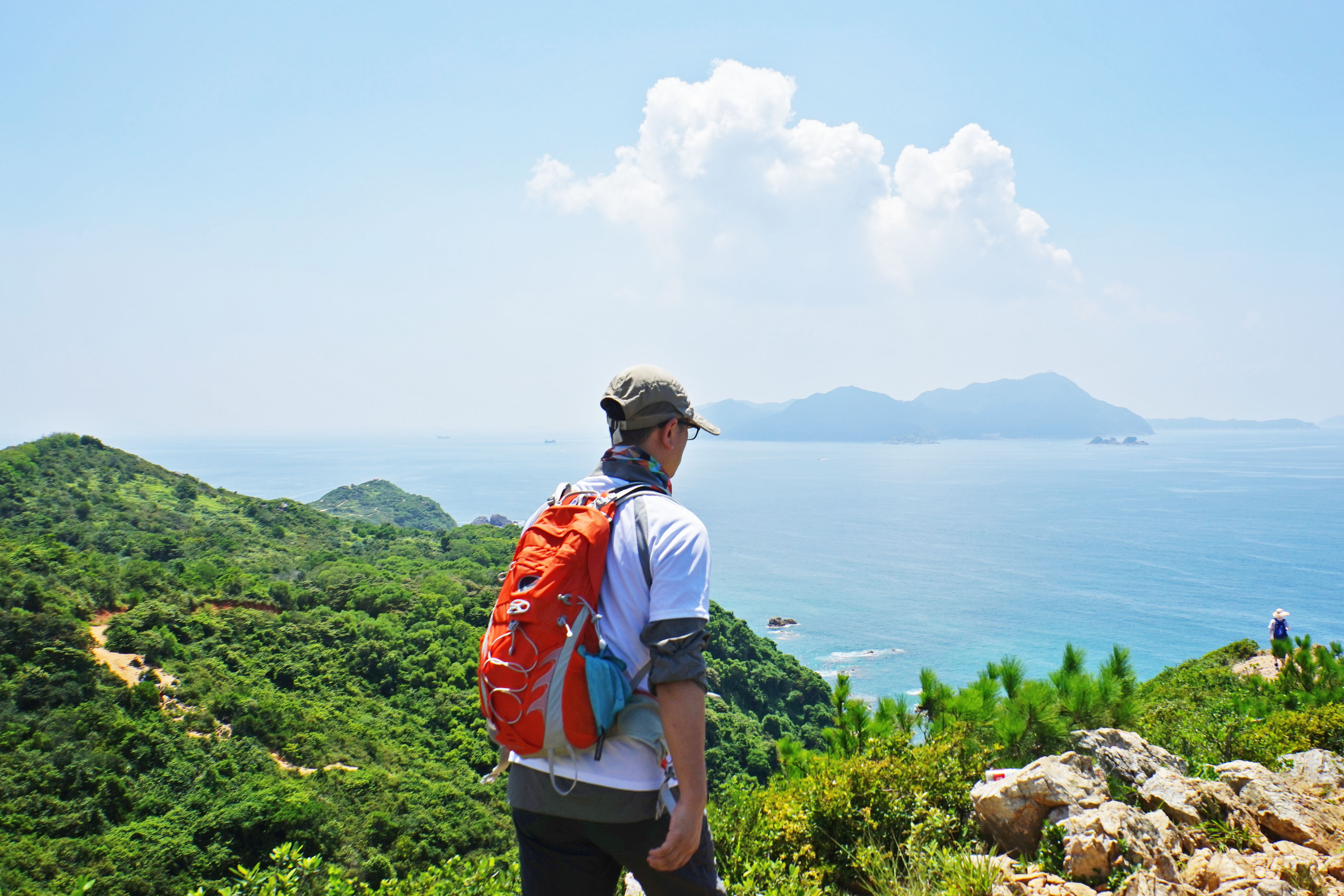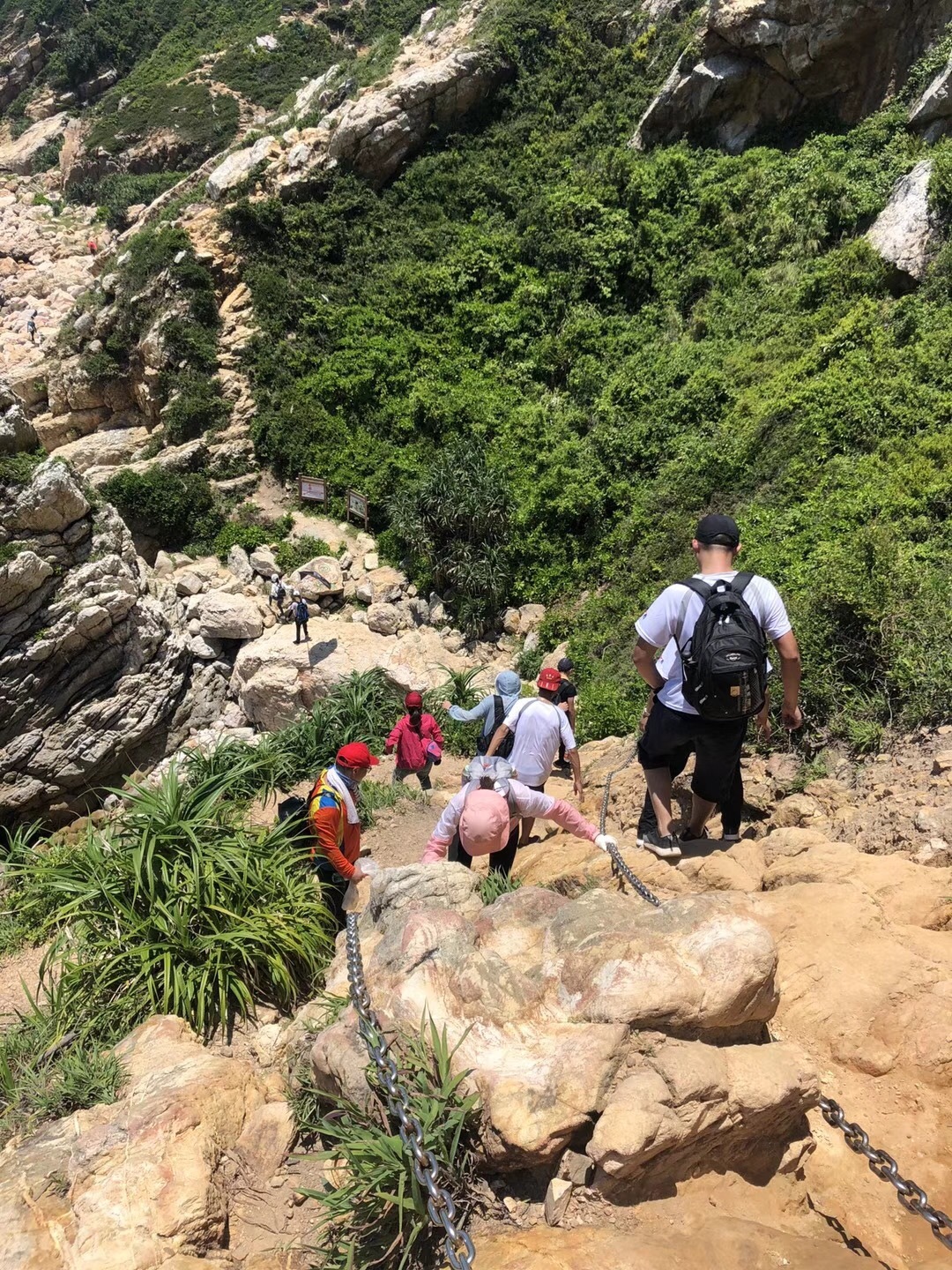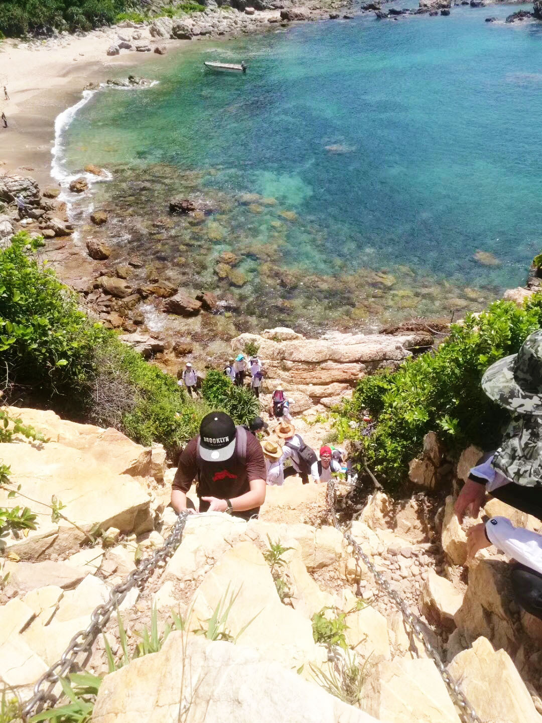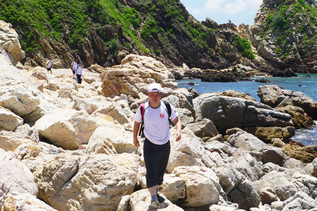 10:30出发,经过一个多小时,正午的太阳就像悬挂在头顶的火球,不停向大家喷吐着火焰,海岸线也已经完全没有了树阴的遮挡,脚底是滚烫的岩石,队友们的体力急剧下降。
