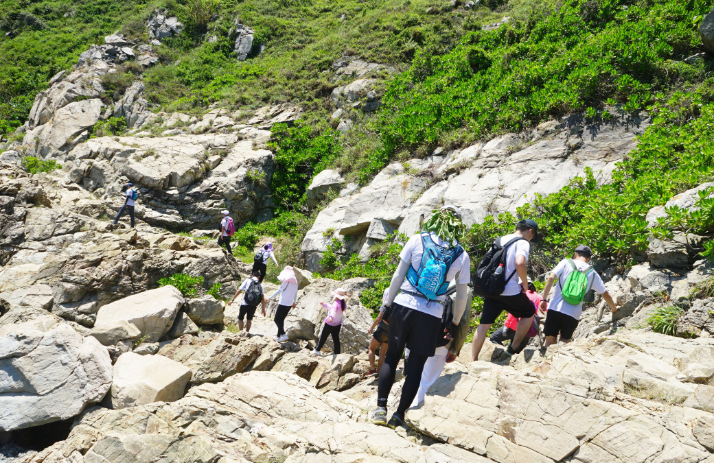 在整个过程中,队伍穿过了多个山岭、峭壁、石滩、半岛、礁石、海蚀岩、石桥,经常上下垂直坡度数十米,队伍前后延长至一公里多,时而在陡峭的岩壁上攀爬,时而在兀立的巨石间跳跃。