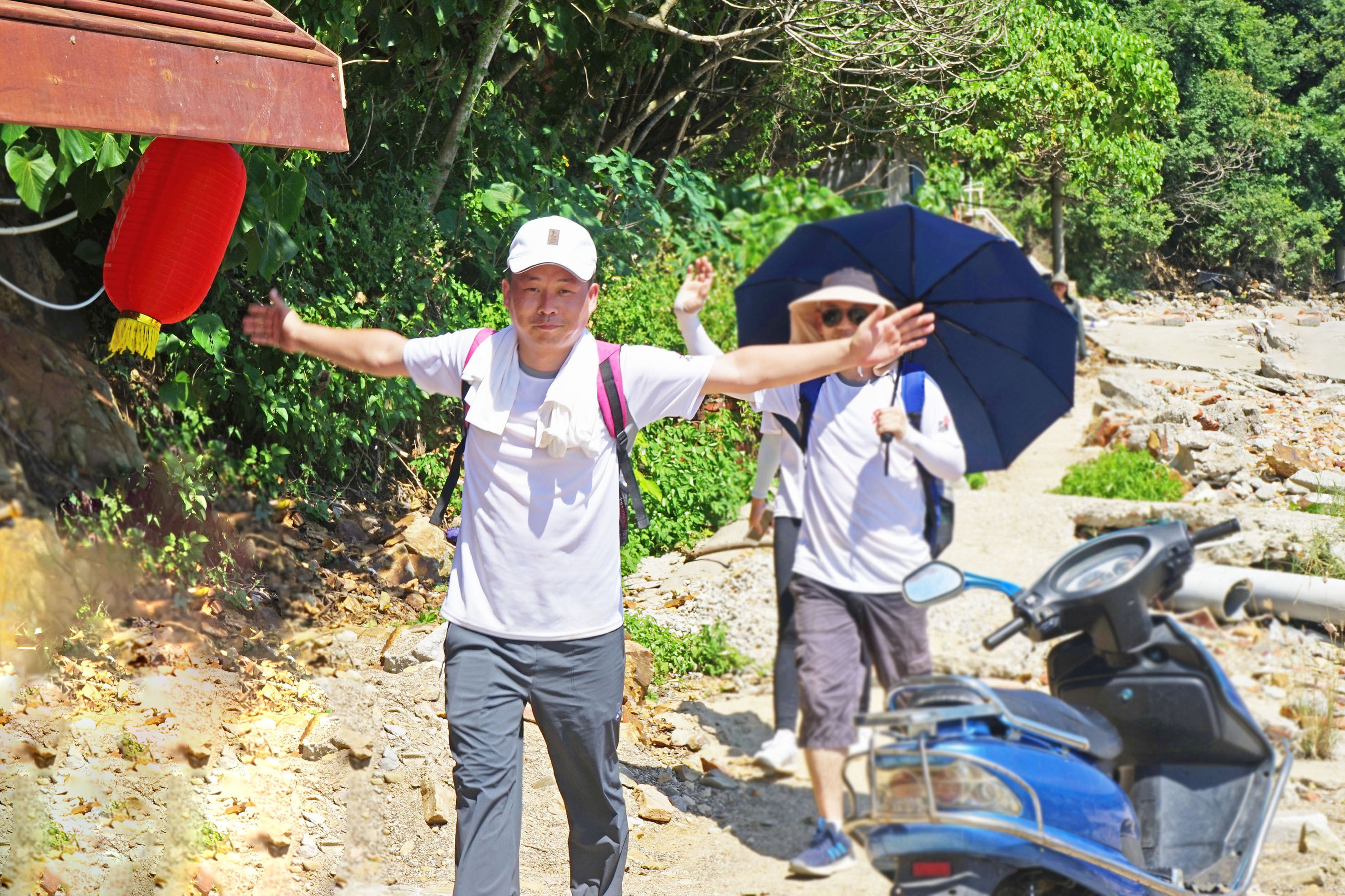 刚出发,一段崎岖颠簸、超过45度的上山石头道路,就给大家来了个下马威,大伙儿矫健的步伐,越往上走变得越沉重,很快队伍就拉开了距离。