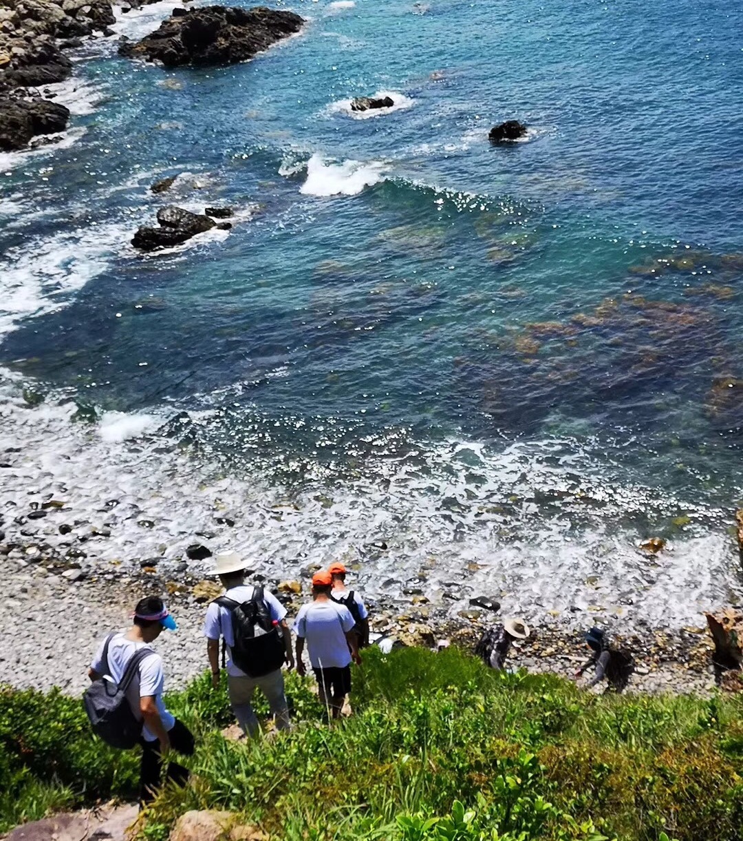 当队伍穿过荆棘小径下山之后,视野开阔,与海岸线来个亲密接触。而这才是海岸线徒步的真正开始。